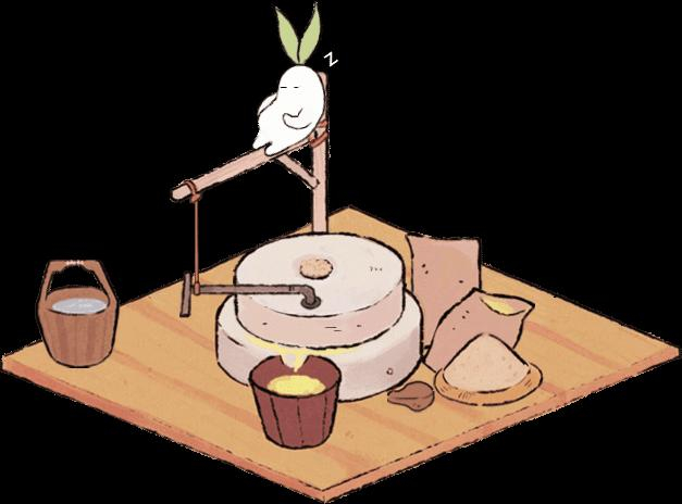 哥哥浮光偶尔会在田间吹响山笛,妹妹淘淘会突然在桃花树下捧起花瓣玩耍,偶然放大屏幕,屋檐还停留一只啾啾小鹦鹉。萝卜山灵负责不同的建造物,萝小磨研磨面粉,有着三片叶子的萝小缸,专职研制美味酸菜,无事干时,它们会在村落转转,突然派活时就忙不迭跑回去,带着或欣喜或郁闷的表情。收成时,兄妹则帮忙搬运至粮仓。