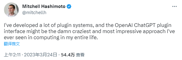 一位资深程序员在推特上感叹道,“我开发过很多插件系统,OpenAI的ChatGPT插件接口可能是我一生中在计算领域见过的最疯狂和最令人印象深刻的方法。”