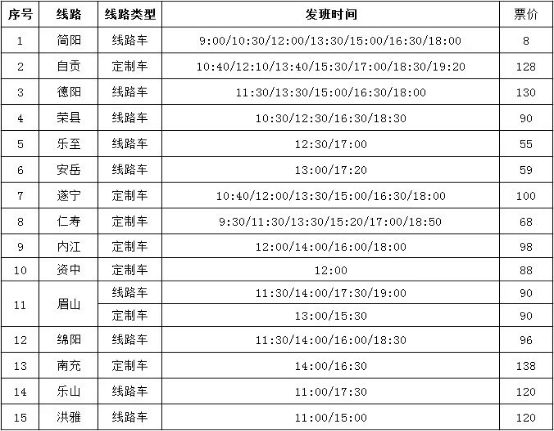 (注:线路发班时间及频次将根据实际情况调整,请以实际票务信息为准。)