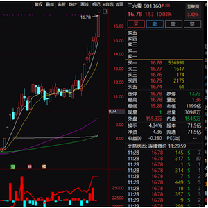 其他大市值股方面,三六零盘中强势涨停,半个交易日成交额逾50亿元,年内涨幅已接近160%,公司目前总市值接近1200亿元。