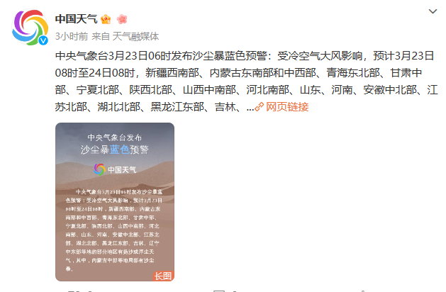 中央气象台3月23日06时发布沙尘暴蓝色预警