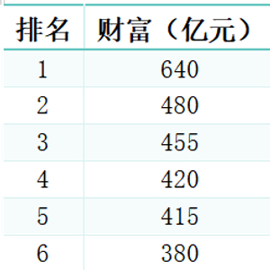 另外21位钢铁富豪分别为:孙寿宽(480亿)、方威(455亿)、项光达(420亿)、沈文荣(415亿)、张志祥(380亿)、李赶坡、郭恩元、高兴江、张荣华、丁立国、董才平、刘锋、王树华等