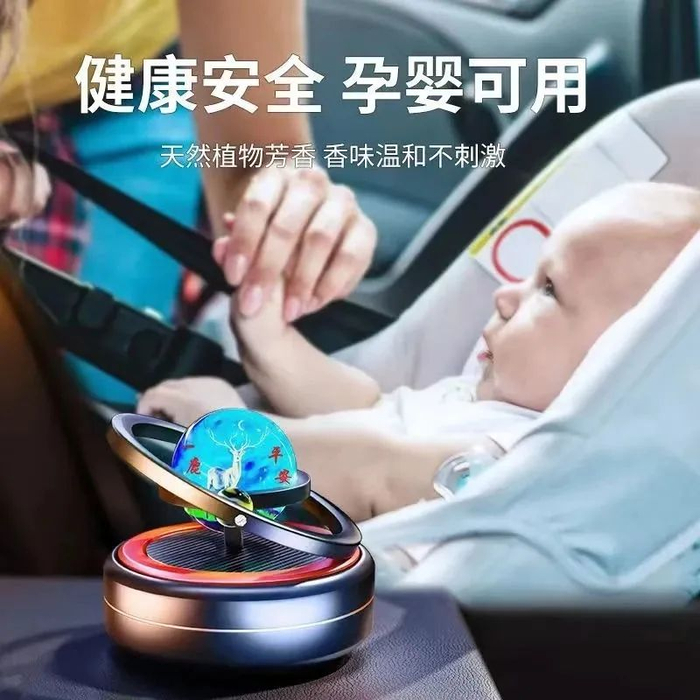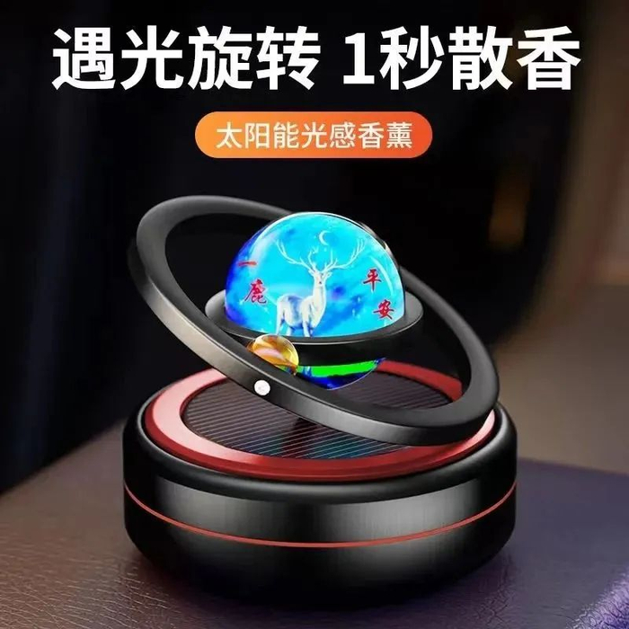 汽车太阳能悬浮车载香水香薰摆件双环旋转磁悬浮车内装饰汽车用品。