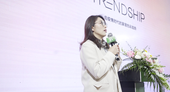 在发布会现场,上海兔宝宝国际贸易有限公司总经理助理沈晴晴带来TUBAOHCC春季新品介绍及国外新品介绍。基于兔宝宝30多年行业精耕的产研优势与全球化产业平台支持,TUBAOHCC饰材高定中心,全面整合高端家居饰材的“高定”能力,从饰面设计,到功能创新,再到非标规格,以个性化、全品类健康环保饰材的定制,驱动“家居高定,从饰材高定开始”的发展浪潮,真正实现“让家更好”的品牌理念。