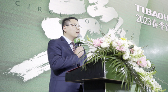 2023TUBAOHCC春季饰材新品发布会以“生生不息”为主题,发布六大系列新品,分别为纸曰系列、造木系列、臻皮系列、知布系列、膜述系列、寓岩系列。