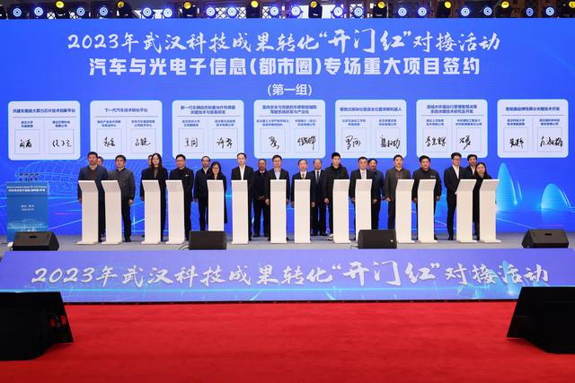 新春第一会召开后不久,武汉经开区就打响了开年“第一枪”。2月23日,2023年武汉科技成果转化“开门红”对接活动·汽车与光电子信息(都市圈)专场活动成功举行。来自华中科技大学、武汉大学、武汉理工大学、湖北产业技术创新与育成中心等高校、科研院所的22个重大科技成果转化项目,落户武汉经开区,签约总金额超过1.45亿元。