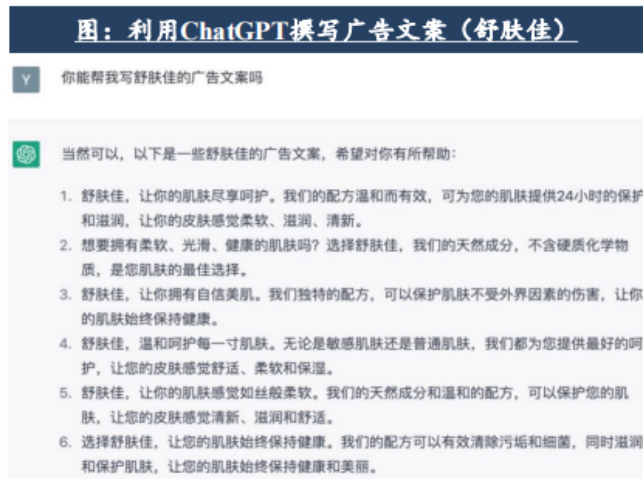 CHATGPT类生成式AI技术在语言理解及内容生成方面的优势,将推动商品推荐及营销精准度提升:1)精准推荐/选品:Chat GPT类生成式AI技术有望实现根据用户的需求、历史行为等,为用户推荐个性化商品或优化公司选品策略;2)营销文案/图像:快速生成针对不同用户的商品个性化描述、说明,为电商平台提供智能化营销活动策划。基于Chat GPT类AI技术及视觉算法等,生成商品三维模型,提升转化。
