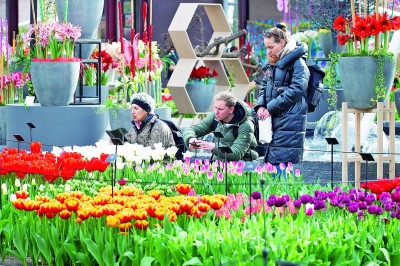 库肯霍夫公园位于荷兰首都阿姆斯特丹附近的利瑟小镇,是荷兰最受欢迎的旅游景点之一,也是全球著名的郁金香花园。库肯霍夫公园通常每年3月至5月对游客开放,今年的开放时间为3月23日至5月14日。图为3月23日,游客在库肯霍夫公园拍摄郁金香。