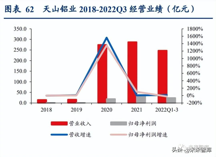 公司主营业务为铝产品、煤炭的生产加工和销售及发供电。公司铝加工产品主要有电解 铝(铝锭)及电解铝深加工产品(食品铝箔、医药铝箔和高精度电子电极铝箔)。公司 2022Q1-Q3 营收 321.3 亿元,同比+29.3%,归母净利润 58.5 亿元,同比+154.6%。公司 立足高端,不断加深高端产品双零箔及电池箔布局,新规划铝箔产能 11.5 万吨,其中神 隆宝鼎一期产能 5.5 万吨于 22 年投产,产品以食品、医药包装箔为主,电池箔认证顺利, 预计 22 年电池箔产量 1.5 万吨。