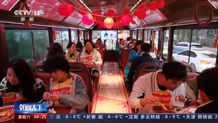 总台央视记者 李超:我在成都最热闹的春熙路,来到成都吃火锅必不可少,今天我们就登上一辆火锅巴士,一起去看看在巴士上吃火锅是一种什么样的体验。