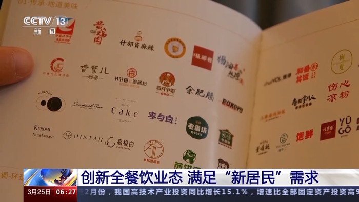 总台央视记者 李超:翻开我手上的这份美味指南,我们可以看到这里聚集了不少四川的名小吃,同时像上海菜、浙江菜、福建菜等100多个特色餐饮也聚集于此。像这样全餐饮的商业业态也吸引了不少“新成都人”前来打卡。