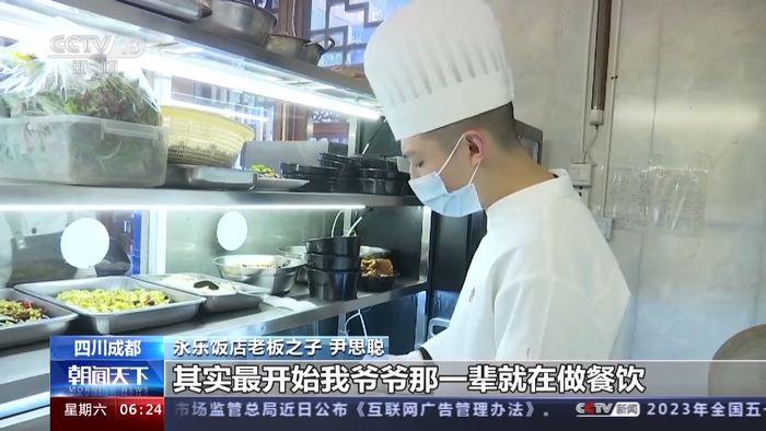 永乐饭店老板之子 尹思聪:其实最开始我爷爷那一辈就在做餐饮,然后从我爸爸传到我这里。我只是想通过自己努力,让客人更喜欢我们家的菜。