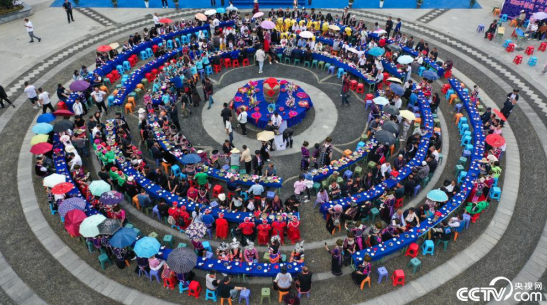 2023年3月23日,贵州省黔西南布依族苗族自治州,贞丰县举办2023年苗族“二月二”走亲节。当地苗族同胞摆起长桌宴,来自省内外苗族同胞身着盛装同唱敬酒歌、共品苗族特色佳肴,欢度节日。
