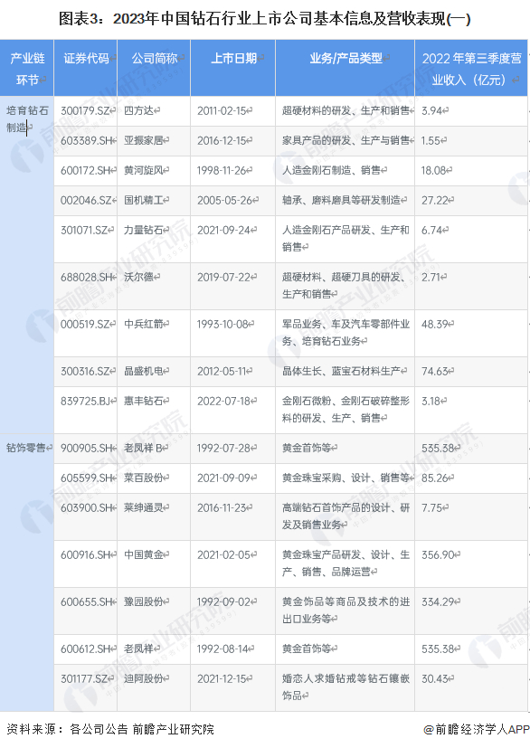【最全】2023年中国钻石行业上市公司全方位对比(附业务布局汇总、业绩对比、业务规划等)