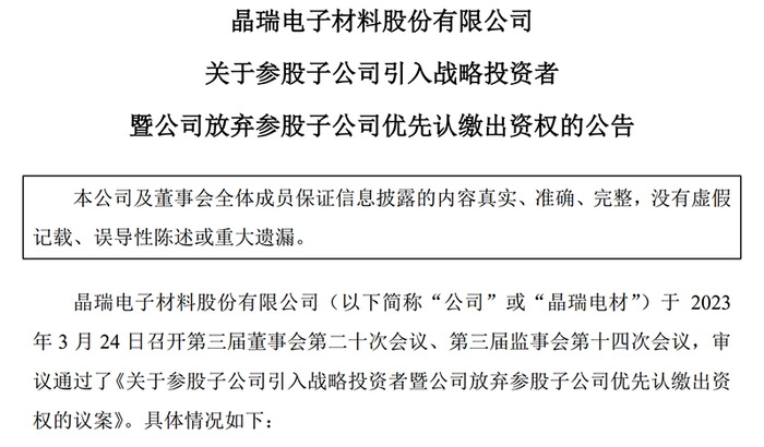 根据协议,大基金二期、国信亿合基金、国信闽西南基金拟以现金方式向湖北晶瑞分别增资1.6亿元、3000万元、3000万元,公司及潜江基金作为湖北晶瑞的现有股东,均放弃本次增资的优先认缴出资权。