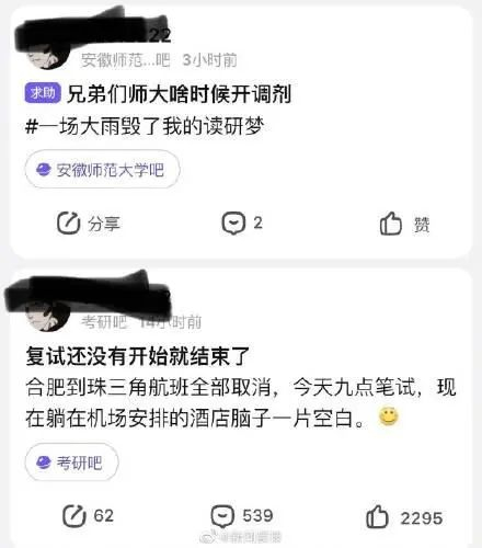 3月24日,一则“考研最大的遗憾”帖子在网络引发关注,帖文显示今年报考广东工业大学的一名安徽考生,因飞往广州的航班受强对流天气影响延误,不幸错过24日的复试笔试。