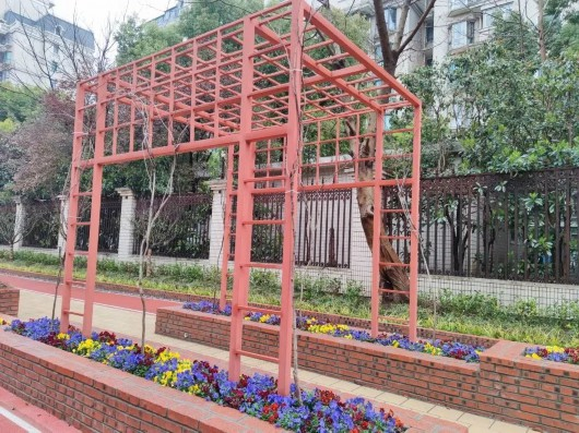四平路街道鞍山路310弄小区内,翻新后的小花园成为“睦邻艺术红花园”,不仅绿意盎然、生机勃勃,还增加了一处“植物分享小站”,是居民小憩和交流的好地方。