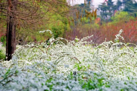 春日时节,共青森林公园的喷雪花、紫叶李、二月兰、迎春花、金钟花,都在尽情绽放,虽然大部分是小众花卉,但都盛开出勃勃生机。