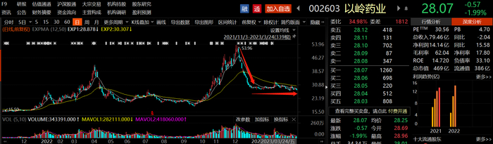 ▌连花清瘟、青霉素走下“神坛” 以岭药业股价腰斩后横盘 华北制药走下坡路