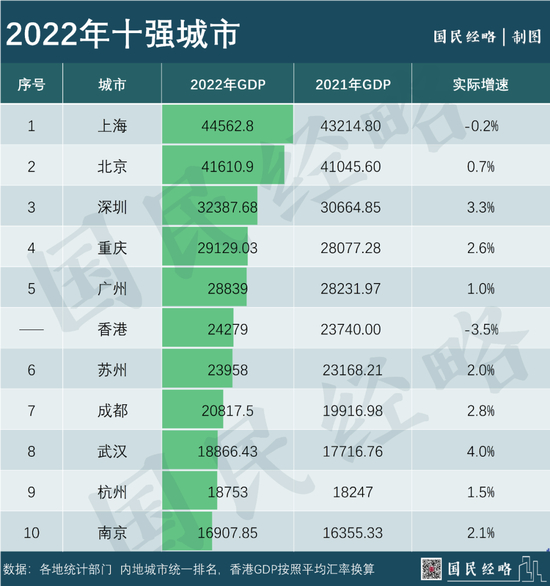 与之对比,GDP十强城市里,北京、成都、武汉、杭州、南京都未能晋级工业十强城市。
