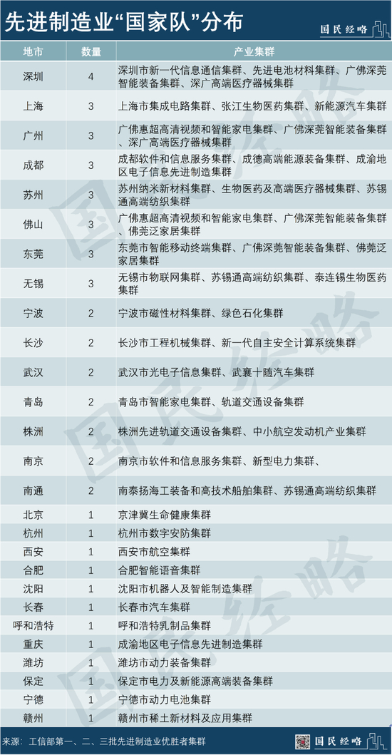 过去几年,工信部先后发布三批先进制造业集群优胜者名单,共有45个国家级集群。