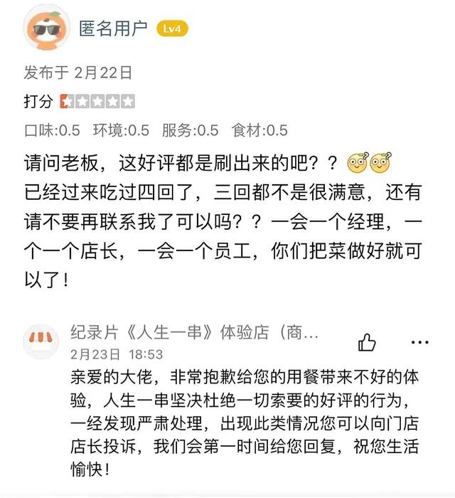 “已经过来吃过四回了,三回都不是很满意,还有请不要再联系我了可以吗?一会一个经理,一会一个店长,一会一个员工,你们把菜做好就可以了。”