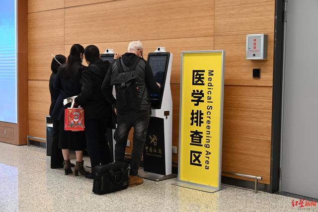 进入安全检查区域后,第一个关卡就是卫生检疫台。“手机申报海关二维码,凭二维码通过卫生检疫台。”卫生检疫台附近的工作人员指引乘客有序通关。记者观察,若提前申报好二维码后,不到10秒就能凭二维码成功过关。据介绍,出境卫生检疫通道设备,会检查乘客的健康申明卡和体温等信息。