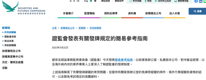 3月22日,香港证监会发表简易参考指南(下简称“指南”),详细解答了有关发牌的常见问题,并提供有关家族办公室的免牌照经营的条件、海外行业经验和资格的认可,以及豁免考试规定的具体资料。涉及的牌照申请者包括家族办公室、私募股本公司、对冲基金经理,以及海外与内地的业界专业人士。