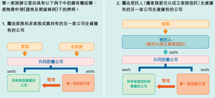 家族办公室需要申领哪类牌照,取决于其在香港提供的服务类型,通常涵盖第1(证券交易)、4(证券咨询)、9(资产管理)类牌照。不过实际操作中也存在两大豁免情况,一是服务仅就集团资产而向集团公司(全资)提供;二是活动附带于根据《受托人条例》注册的信托公司的信托服务。
