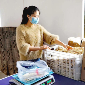 村民正在对白芦笋进行分拣、称重、包装。高敏摄