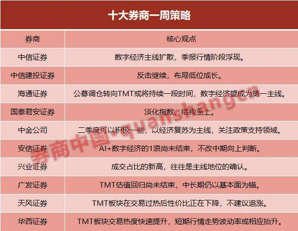 十大券商一周策略:TMT还能上车吗?1浪尚未结束!数字经济主线扩散,二季度可以积极些