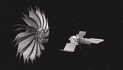 HabEx望远镜阻挡恒星光线的第二个方法就是使用遮星板,它位于望远镜前方,形似花瓣有足球场大小,能阻挡恒星发出的光,但允许行星反射的光照射到望远镜的仪器上。