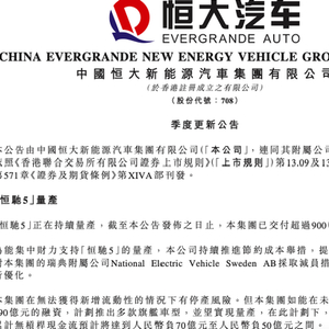 据恒大方面透露,在恒大新能源汽车托管账户下持有的恒大新能源汽车股份,可以在恒大条款清单中规定的某些条件下被解除托管以出售给战略投资者。此外,恒大将发行强制可交换债券,可交换为约30.95亿股的恒大新能源汽车股份,占截至恒大条款清单日期已发行恒大新能源汽车股份总数的约28.54%。