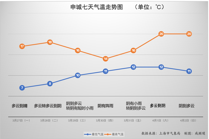 新一轮雨水难挡升温势头,上海本周最高温再达“2”字头,春季如遇大风请注意