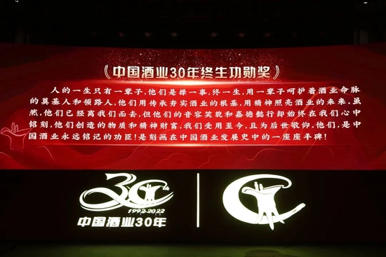 为追忆和缅怀这些酒业先辈,在3月26日举行的“再出发,责任重于泰山——中国酒业协会成立三十周年庆典”上,对奠定酿酒事业基石的酒业先辈们追授“中国酒业30年终生功勋奖”荣誉称号。活动现场,部分获奖人的家属也受邀参会并代领这一荣誉奖项,中国轻工业联合会原会长步正发、中国酒业协会理事长宋书玉等为他们颁奖,全体参会人员用经久不息的掌声,感恩这些用一辈子呵护着酒业命脉的奠基人和领路人。