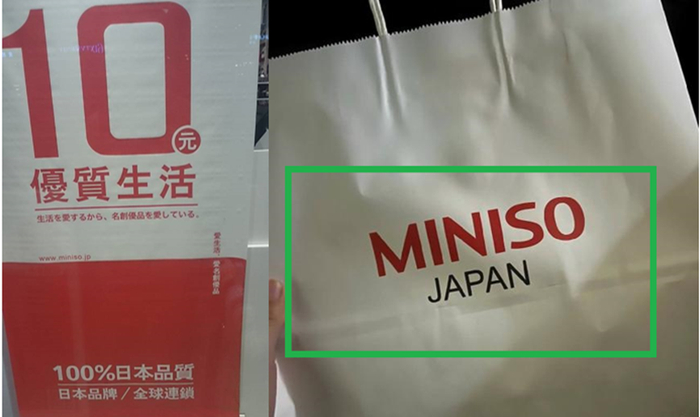 在名创优品门店的宣传板以及纸袋上,都印上日本品牌的说明。