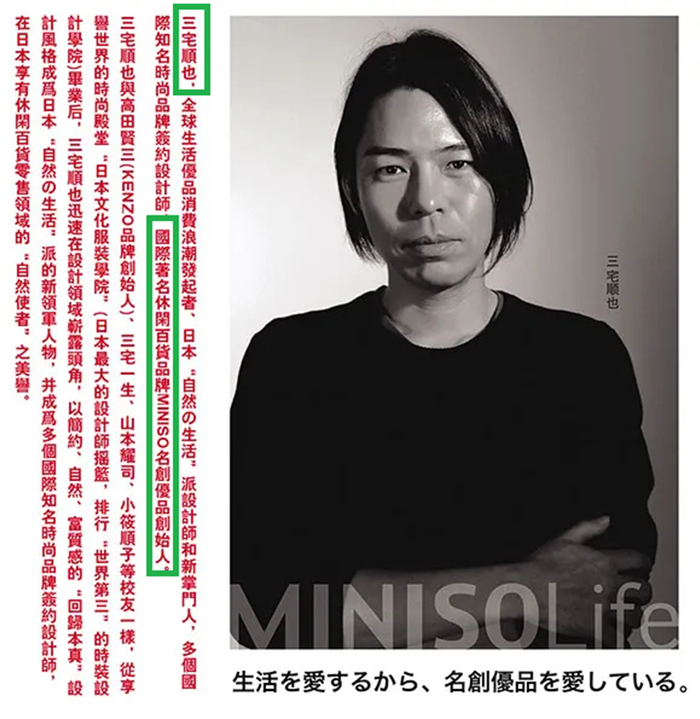 此外,日经商业专栏调查发现,名创优品公布的日本总部的地址根本不存在。至于名创优品的联合创始人三宅顺也,据说毕业于日本文化时装学院,但是,日本媒体调查了半天,也没找到这个所谓的“日本著名设计师”毕业于哪个学校;他是哪里人?曾在哪里工作过?都是一个谜。三宅顺也连Wiki百科资料也没有,网上查到的唯一工作履历来自名创优品。有日本媒体由此讽刺称,三宅顺也是一名“不存在的名创优品设计师”。