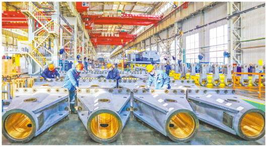 近年来,新能源汽车市场发展迅猛,济南二机床拿下多条新能源汽车冲压生产线订单,蔚来、理想、小鹏这些造车新势力用的都是济南二机床的冲压生产线。图为济南二机床集团生产车间。(□记者王健段婷婷通讯员徐宁报道)