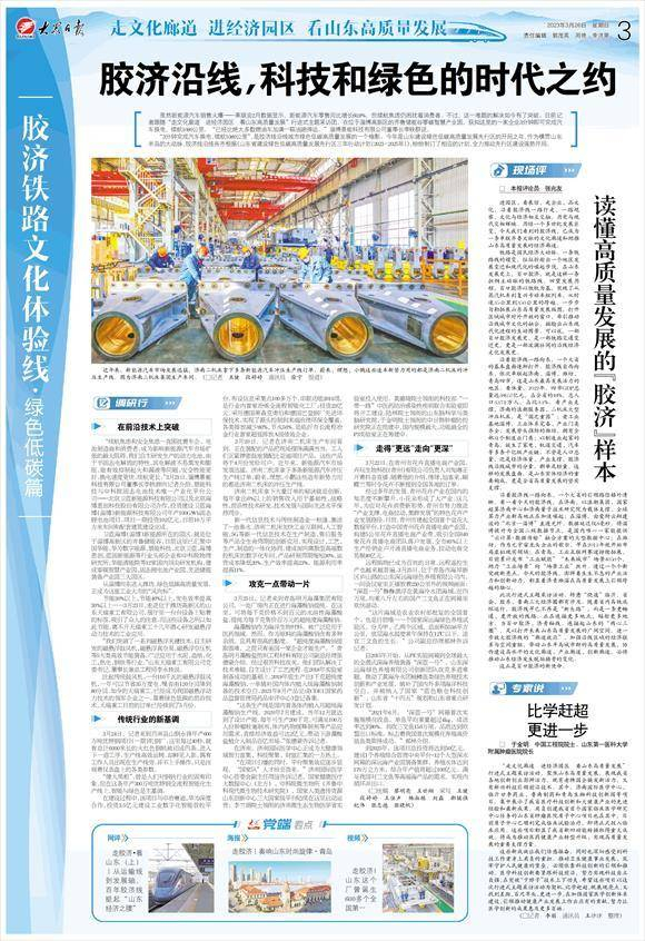 “3分钟完成汽车换电,续航1080公里”,是胶济线沿线城市绿色低碳高质量发展的一个缩影。今年是山东建设绿色低碳高质量发展先行区的开局之年,作为横贯山东半岛的大动脉,胶济线沿线各市根据《山东省建设绿色低碳高质量发展先行区三年行动计划(2023-2025年)》,纷纷制订了相应的计划,全力推动先行区建设强势开局。