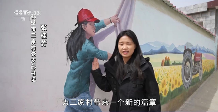鹤壁市三家村党支部书记 张桂芳:这个前面画的是我们村的美好蓝图,这个小姑娘是画师画的我,大家可能是希望我为三家村带来一个新的篇章。