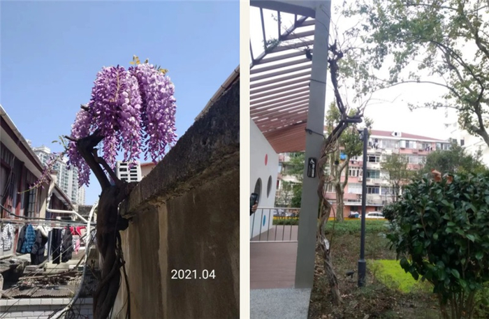 原来,郑伟芬的丈夫年仅12岁时就在老房子种下了这棵紫藤树。旧改方案公示后,郑伟芬给区旧改指挥部、区绿化办写了一封信,表达了她想为老树找个新家的心愿。没过多久,工作人员就上门查看了情况。最后,郑伟芬收到了回复:这棵树将移植到和平公园。郑伟芬期待着今年4月紫藤开花,她还会去看一看,就像看老朋友一样。