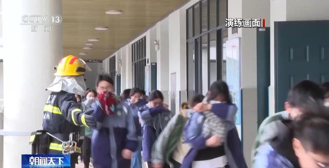 这是安徽滁州某小学模拟火灾真实场景开展的一场应急疏散逃生避险演习,学生在消防员和老师的指引下沿着楼梯紧急转移至学校操场上的安全区域。