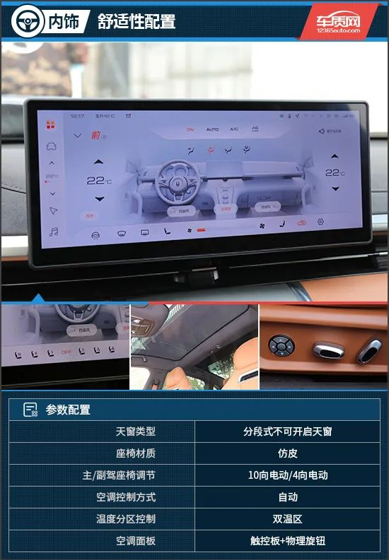 车辆内部采用了环抱式设计语言,并且中控台造型平直,搭配双拼配色以及贯穿式的空调出风口,增加了内部层次感。此外,整个T字型镂空中控台采用大面积皮质包覆,搭配些许实体物理拨杆和旋钮,给人感觉精致又有格调。三连炮筒式全液晶仪表盘营造出些许运动气息,内部功能区域划分较为明确,各种行车信息一目了然。