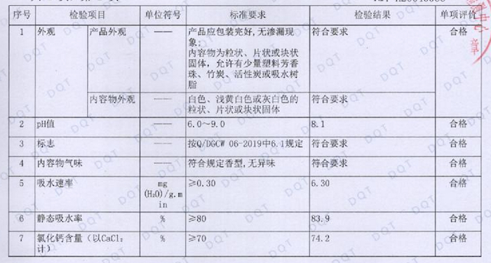 经专业机构检测,森林海洋除湿盒的pH值、内容物气味、吸水速率和氯化钙含量均合格。
