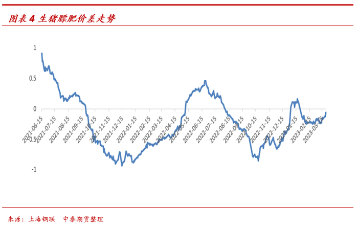 现货价格已经出现了明显下跌,该过程消化了部分利空因素,也孕育了一些利多因素:第一,南北价差开始拉大。东南地区和东北地区毛猪价差拉大至1元/公斤以上,生猪南北调运开始有利可图,这将对东北地区价格形成支撑,特别是为东北地区大体重毛猪的消化提供了机会;第二,膘肥价差转负,利于大体重毛猪出清。短期看,膘肥价差拉大并不是一个积极的因素,因为牛猪抛售将对短期现货价格形成显著压力。但是只有“体重出清”,未来价格的上涨才能甩掉包袱,所以膘肥价差拉大,倒逼大体重猪快速出清,对远期价格上涨有积极意义。第三,北方疫情因素开始减弱,对短期价格的冲击降低,对远期价格或有支撑。近期生猪出栏体重有所上升,侧面反映因生猪疫情导致的毛猪抛售开始减少,问题猪只抛售的压力有所减轻,对短期市场的冲击减弱。同时,前期疫情导致的被动出栏(商品猪)可能会对4、5月份毛猪供应形成一定透支,这也是利多因素,但程度较难衡量。第四,现货价格水平处于政策调控的边界区域。近期玉米、豆粕价格持续回落,带动猪粮比价有所回升,发改委公布的最新猪粮比价为5.3,该数值处于触发《完善政府猪肉储备调节机制 做好猪肉市场保供稳价工作预案》一级预警指标的临界点附近,如果未来现货价格继续下跌,市场对官方启动收储的预期将快速升温,不排除市场情绪发生反转的可能性。