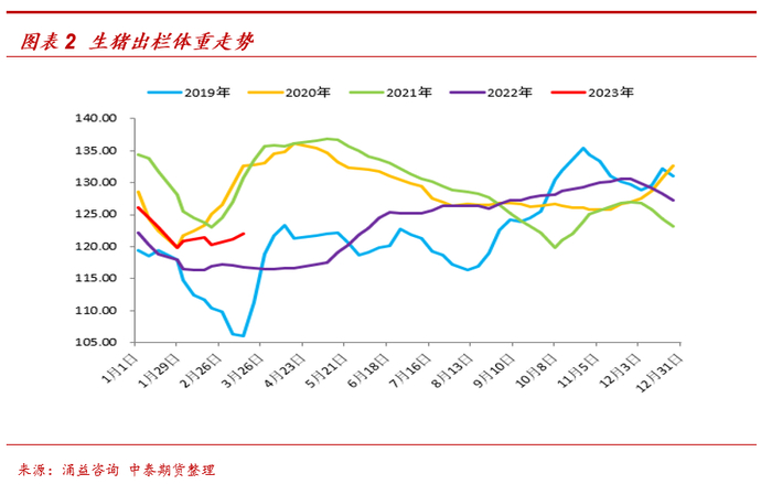 生猪市场短期仍处于“供强需弱”的格局中:第一,无论基于官方能繁母猪存栏趋势的线性推导,还是畜牧业协会新生仔猪数据的指引,二季度生猪理论供应量将环比继续增加;第二,目前生猪出栏体重仍然处于高位,且近两周出栏体重有继续上扬的迹象,体重去化的速度不理想。特别是随着天气渐热,在料肉比劣势和肥标价差拉大的背景下,肥猪抛售的压力越来越大,屠牛可能是短期最大的市场风险;第三,一季度二育入场主要集中在2月中上旬,对应出栏高峰约在3月底-4月中旬,作为助涨杀跌的重要力量,二育出栏也将对现货价格形成压力;第四,目前仍处于猪肉消费的季节性淡季,鲜销走货疲软,冻品库容率已修复至正常水平,屠宰开工率甚至有回落的迹象,猪肉需求短期没有明显的边际增量,难以拉动价格上行。