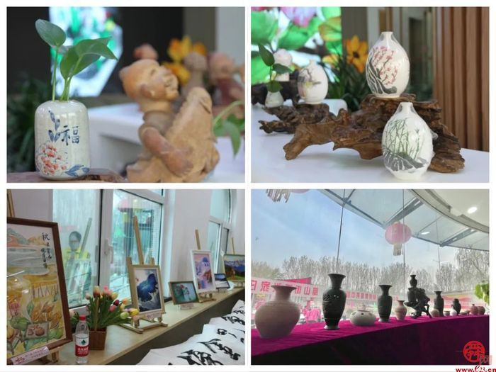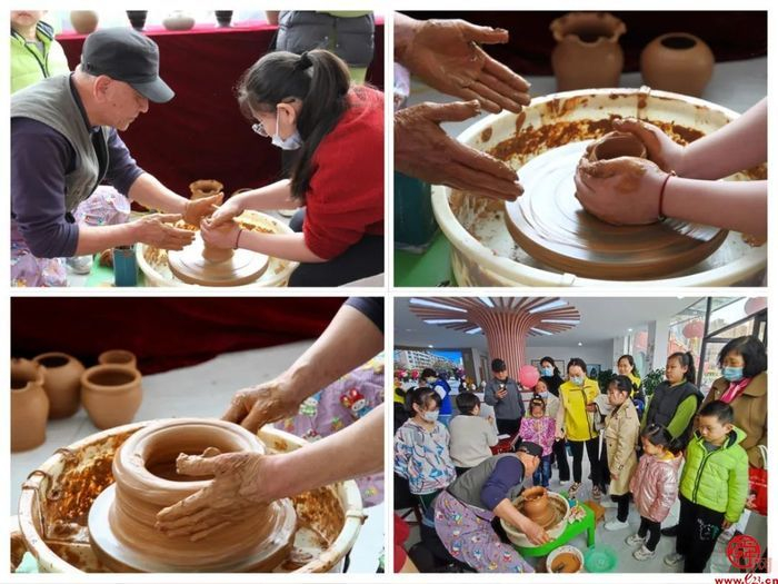 土陶是一种非常古老的传统手工工艺制品,曾经张家庄因“盆子罐子”而成为远近闻名的村庄,在活动现场,村民刘乃岩为大家表演土陶制作过程,他手法纯熟巧妙,制作的陶盆造型优美。“三分做,七分修”,泥土从指尖穿梭,泥屑从刀尖划落,经过他的细心雕琢,一个个精致的陶盆陶罐在他手中诞生,给大家留下深刻的印象。