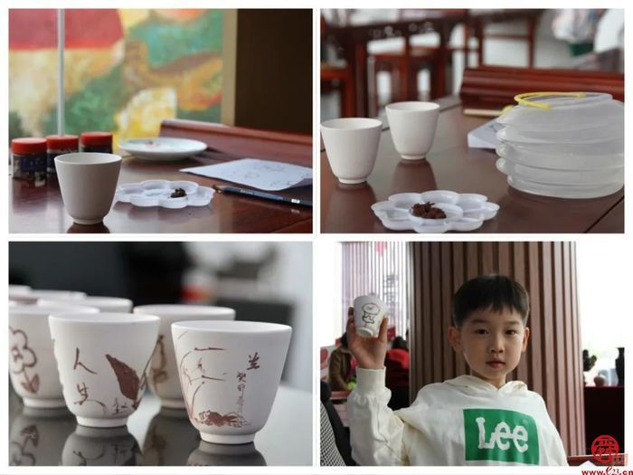 海瓷亦称“贝壳瓷”“贝瓷”,是以海洋贝壳为基础原料,辅以长石、石英、高岭土等烧制而成。海瓷绘制现场,大家亲身参与到海瓷艺术的创作过程中,自由发挥想象空间,在杯子上绘制草稿,随后上色创作,亲手绘制专属于自己的水杯与花瓶,感受海瓷之美。