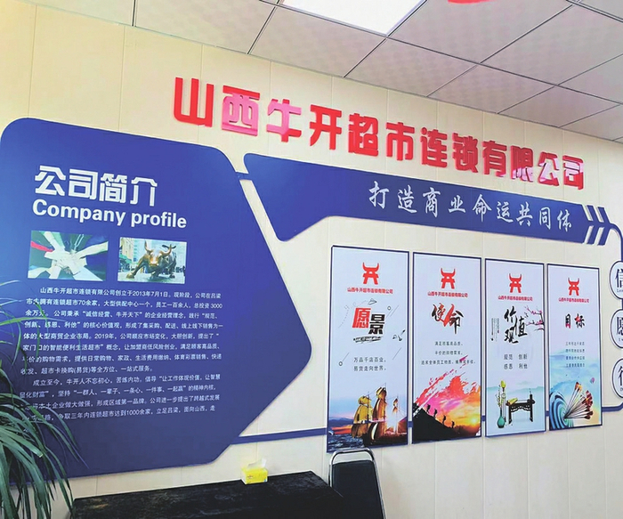 山西牛开超市连锁有限公司成立于2013年,注册资金1000万元。该公司创新提出“家门口的智能便利生活超市”概念,延伸超市社区购物、家政、快递、易货等线下服务功能,并开启了线上智能服务,形成了离石首家集供配于一体的一站式全方位服务智能便利连锁超市。