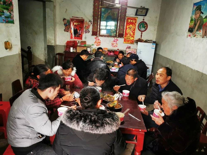 平时村里只有六七十岁的留守老人,只有过年时一家人才能团聚